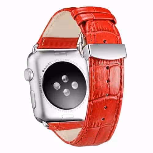 Apple Watch 38mm – 40mm OATSBASF Krokodille Tekstur Ægte Læder Armbånd – Rød