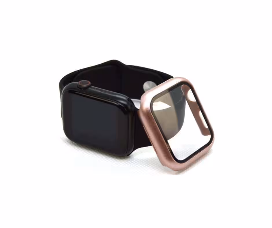 4. Fjern det beskyttende film fra dit Apple Watch Skærmbeskyttelse Full Protection Rosa Guld 40mm og klik forsigtigt coveret ned over dit Apple Watch.