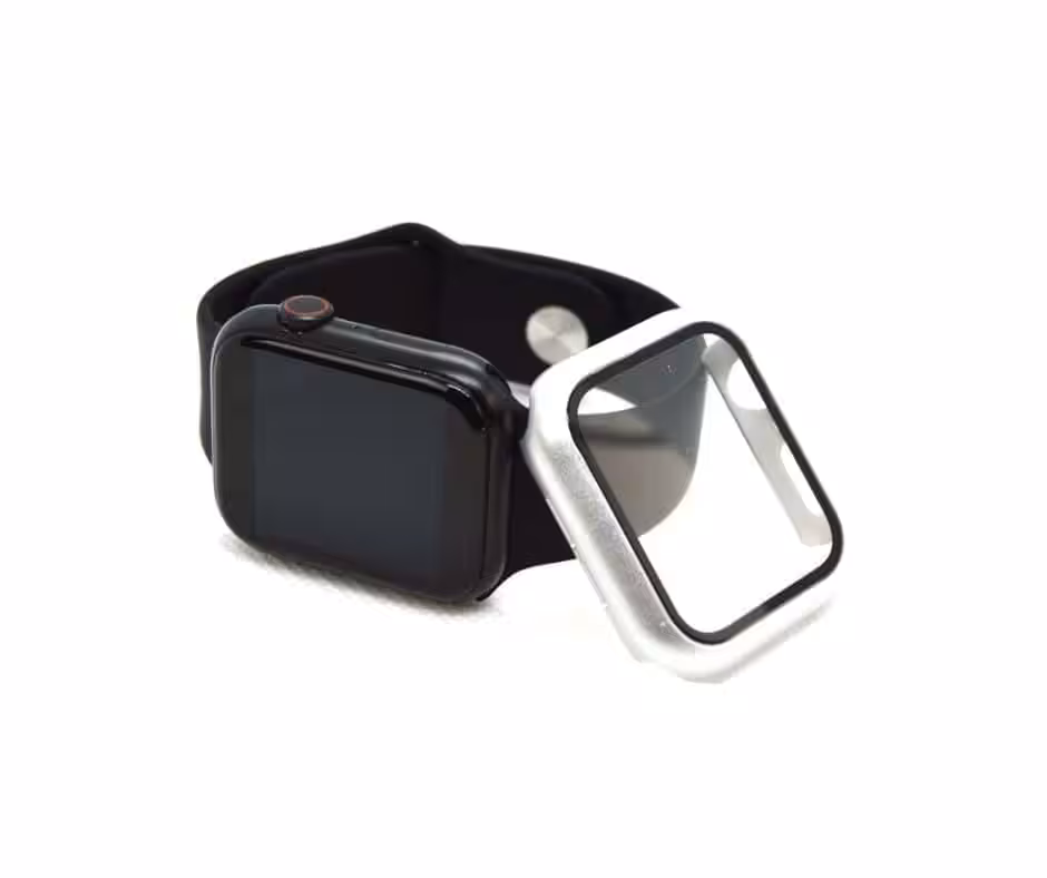 4. Fjern det beskyttende film fra dit Apple Watch skærmbeskyttelse Full Protection Sølv 44mm og klik forsigtigt coveret ned over dit Apple Watch.