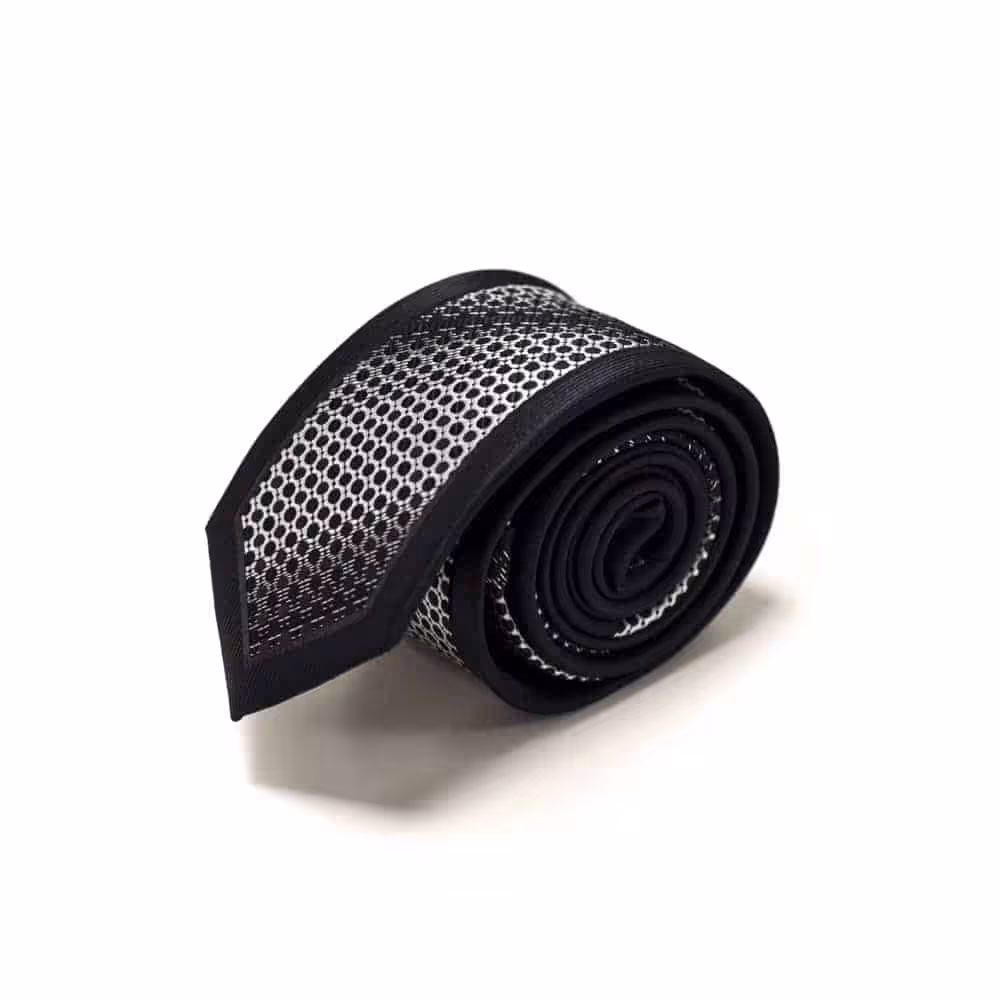 Et lækkert slips i klassisk sort og hvid, men med et twist! Slipset skiller sig ud med de unikke prikker og de skarpe kanter!