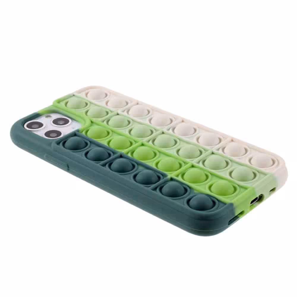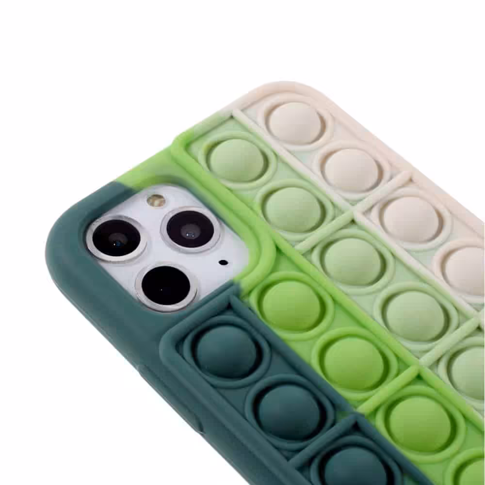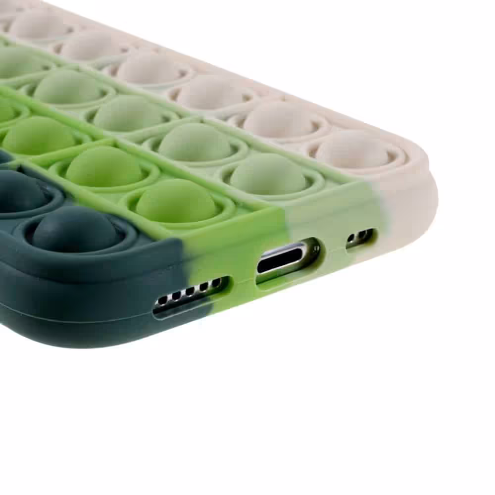Med iPhone 11 Pro Max PopIt Cover Grøn får du ikke kun beskyttelse, men også en fantastisk fidget-funktion. Boblerne, der er fremstillet af holdbart gummimateriale, strækker sig hele vejen rundt om telefonen og tilbyder muligheden for at poppe dem – ligesom den velkendte bobleplast, du sikkert har nydt at lege med tidligere. Hvem kan modstå den tilfredsstillende følelse af at poppe disse bobler? Det er den perfekte måde at holde fingrene aktive og hjernen engageret!