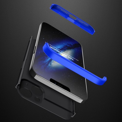 Hvilke farver er tilgængelige for iPhone 13 Mini 360 Beskyttelsescover Sort/Blå?