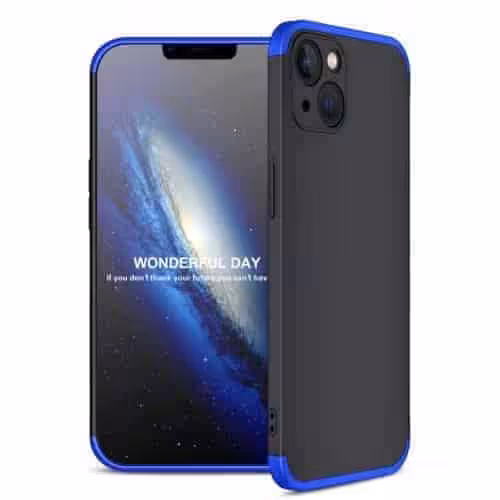 Hvilke farver er tilgængelige for iPhone 13 Mini 360 Beskyttelsescover Sort/Blå?