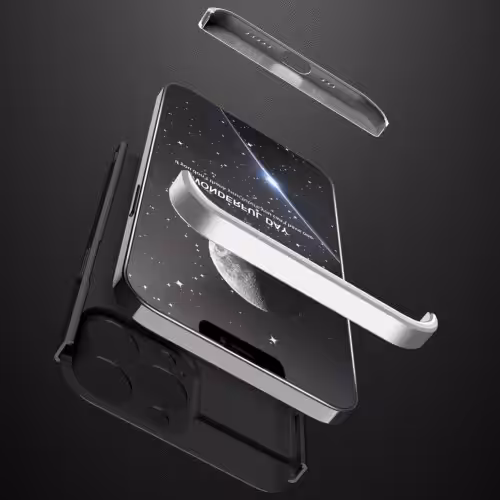 Det elegante design af iPhone 13 Pro Max 360 Beskyttelsescover kombinerer sort og sølv på en måde, der tilføjer en sofistikeret dimension til din enhed. Den smidige integration af farverne komplementerer stilfuldt din iPhone, hvilket giver den et touch af klasse uden at overskygge dens originale design. Dette cover er ikke kun en beskyttelse; det er en udsmykning af din smartphone.