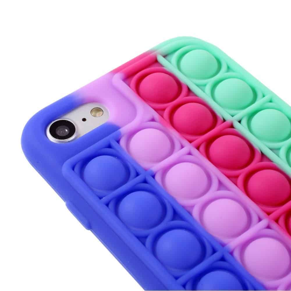 iPhone 7 PopIt Cover Regnbue er fremstillet af bløde gummibobler, der omslutter etuiet hele vejen rundt. Disse bobler ligner dem, du kender fra bobleplast, hvilket gør det til et ideelt valg for alle, der elsker at poppe bobler. Det er ikke blot et cover, men også en form for stressaflastning, der kan være en fantastisk hjælp til at fokusere i en travl hverdag.