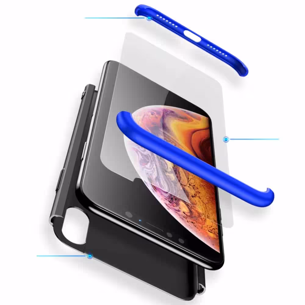 iPhone X 360 Beskyttelsescover Sort/Blå Når du bruger dit udstyr mange gange om dagen, tæller de små detaljer. Her får du en løsning, der føles stilsikker & let at bruge i farven blå. Det er lavet til hverdagsbrug – og til at holde til den.