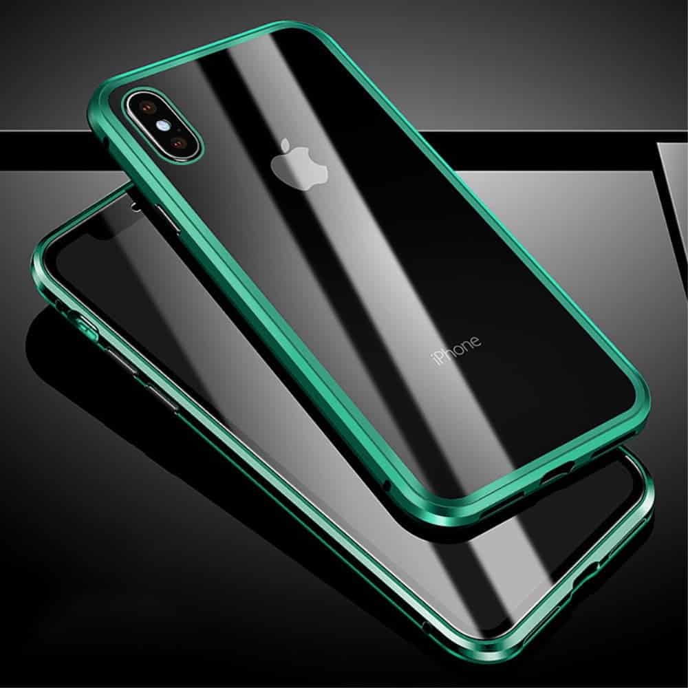 iPhone X Perfect Cover Grøn er fremstillet i et stilrent design. Det er skræddersyet til iPhone X med krystalklare beskyttelsesglas både foran og bagved. Glasset på bagsiden er 0,7 mm tykt mens glasset kun er 0,3 mm på forsiden! De ekstrem tynde glas sørger for at touch funktionen på din iPhone X stadig er fuldt brugbart. Designet er lavet med en metallisk ramme, som giver et elegant finish. Din iPhone X får fuld beskyttelse 360 grader rundt og du kan derfor sige farvel til irriterende ridser og skrammer med dette iPhone X Perfect Cover Grøn . Ved hjælp af de stærke magneter og et kliksystem, monterer du nemt dit nye iPhone X Perfect Cover Grøn omkring din mobil . Det skræddersyede design omslutter din iPhone X tæt, så du vil opleve den ultimative pasform mellem perfect coveret og smartphone. *Magneterne vil ikke påvirke din mobiltelefons signalstyrke, da polerne vender væk fra mobiltelefonen .