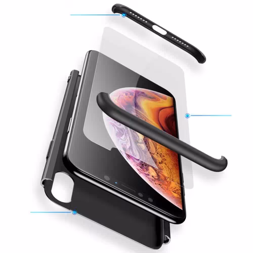 Med iPhone XS 360 beskyttelsescover Sort kan du være sikker på at give din smartphone _den behandling, den fortjener_. Det tilbyder ikke blot fremragende beskyttelse, men det er også et stilfuldt valg, der hjælper med at holde din iPhone XS sikker og_ god som ny_. Uanset om du er på arbejdet, på farten, eller blot derhjemme, er dette cover en uundgåelig del af din smartphone-oplevelse.
