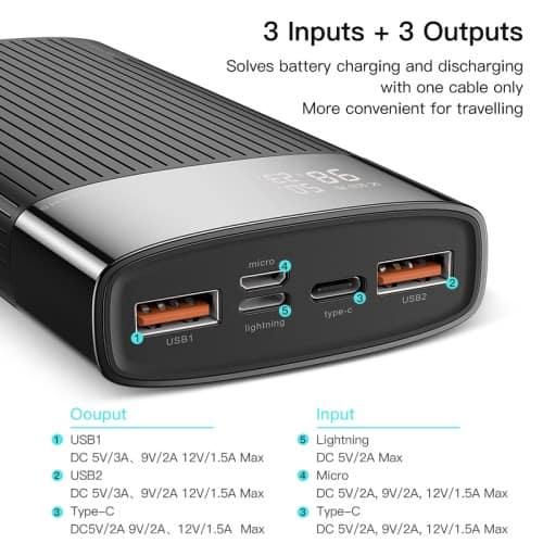 - Input interface: Micro + Type-C + lightning
