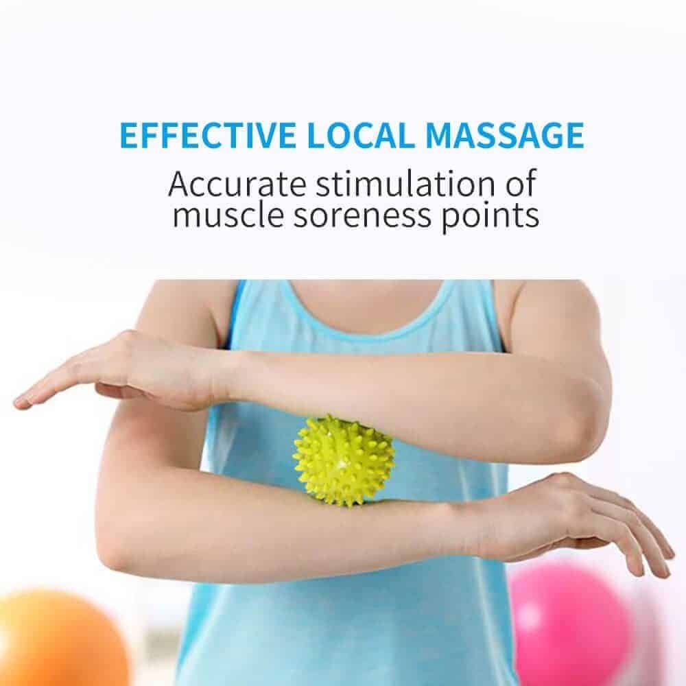 Massagebold Med Pigge Gul er din bedste ven mod smerter i muskler. Massagebolden kan anvendes til at forebygge smerter i muskler, ved at anvende den på de udsatte steder, på kroppen, som man ved der kan være bøvl med. Massagebolden kan også hjælpe dig, hvis du har smerter i musklerne og den skal blot bruges til at massere det pågældende sted, du oplever smerter.