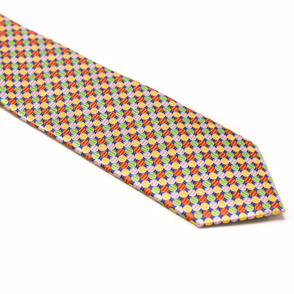 Kan du ikke få nok af farver, og er du pjattet med at kombinere dem på kryds og tværs? Så er vores multifarvet prikkede slips og klud lige noget for dig!