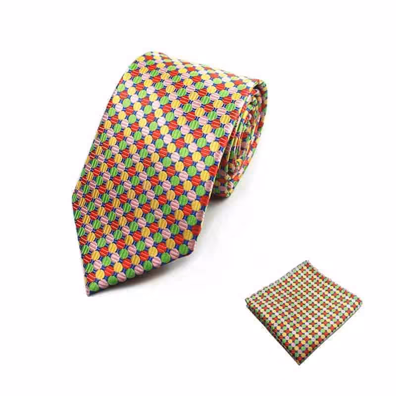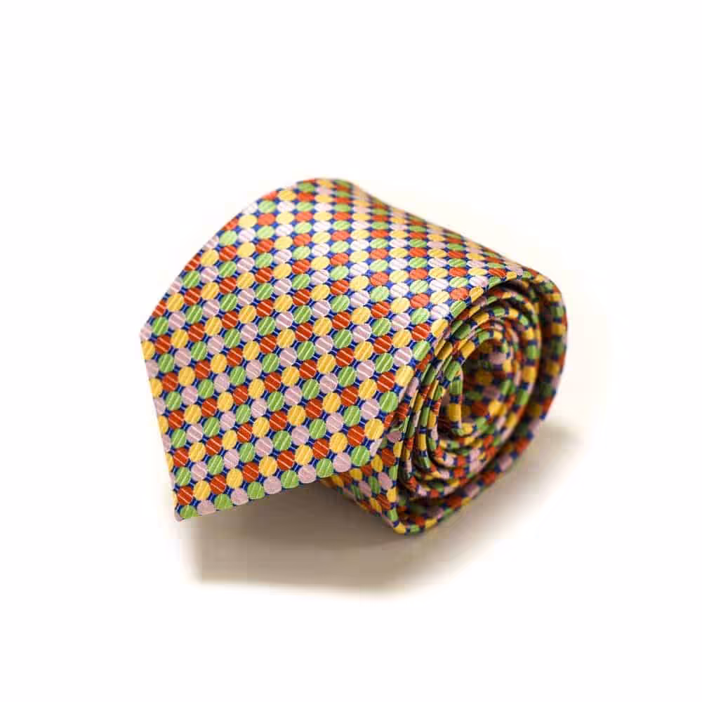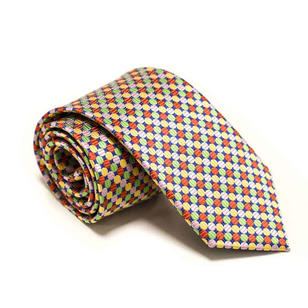 Kan du ikke få nok af farver, og er du pjattet med at kombinere dem på kryds og tværs? Så er vores multifarvet prikkede slips og klud lige noget for dig!