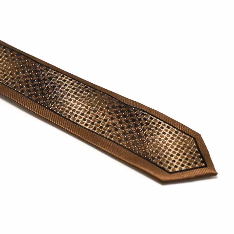 Selvom dette prikkede slips i brunt og guld skiller sig lidt mere ud end et ensfarvet af slagsen, er det stadig så afdæmpet, at det sagtens kan bruges igen og igen. Mangler du det perfekte slips til en fødselsdagsfest, en forretningsmiddag eller noget helt tredje, er dette prikkede slips i brunt og guld værd at se nærmere på. Slipset kan desuden matches med forskellige slipsenåle i sølv eller guld for at give et nyt udtryk.
