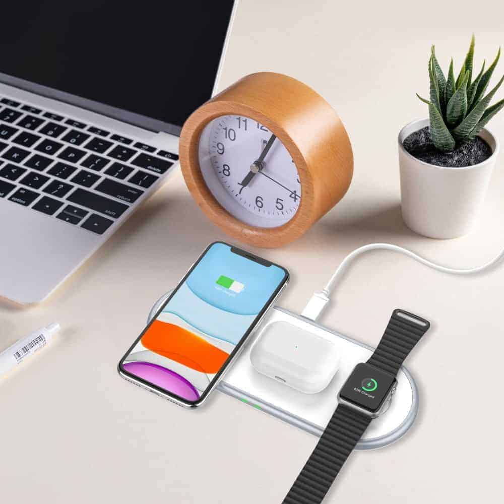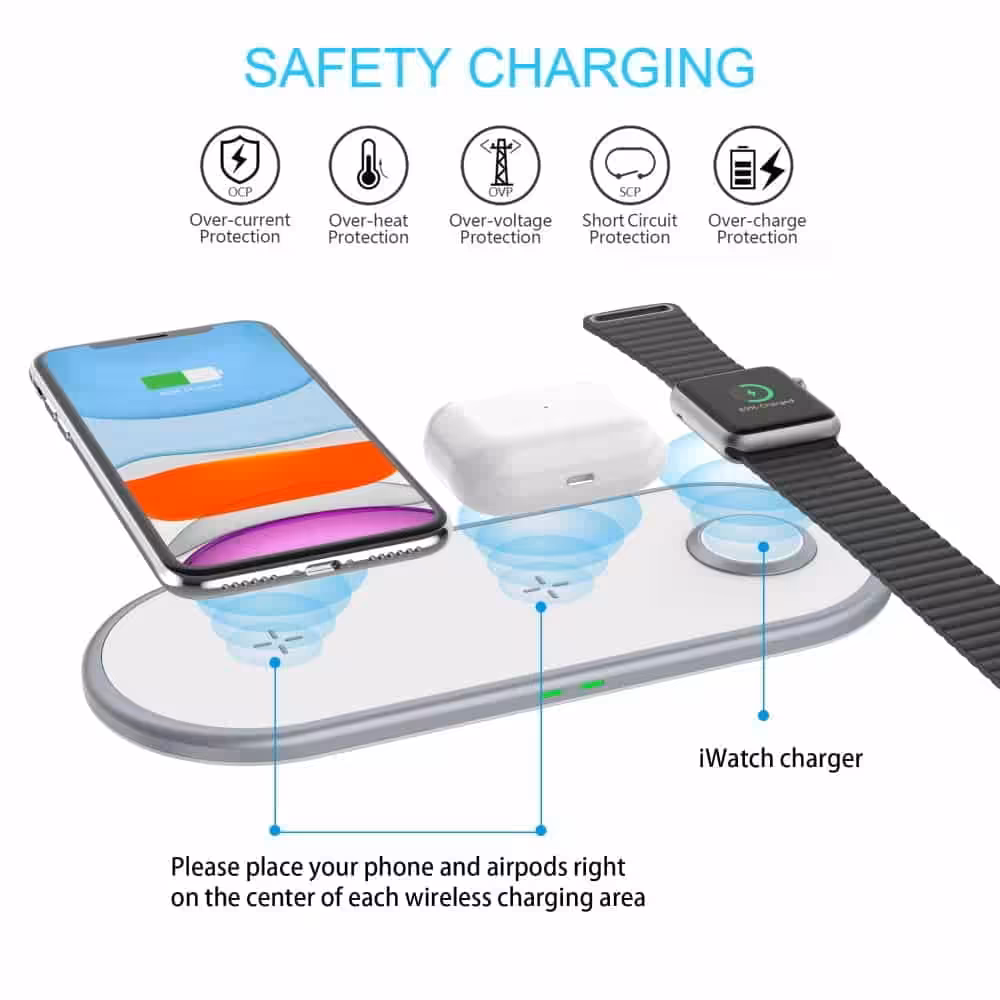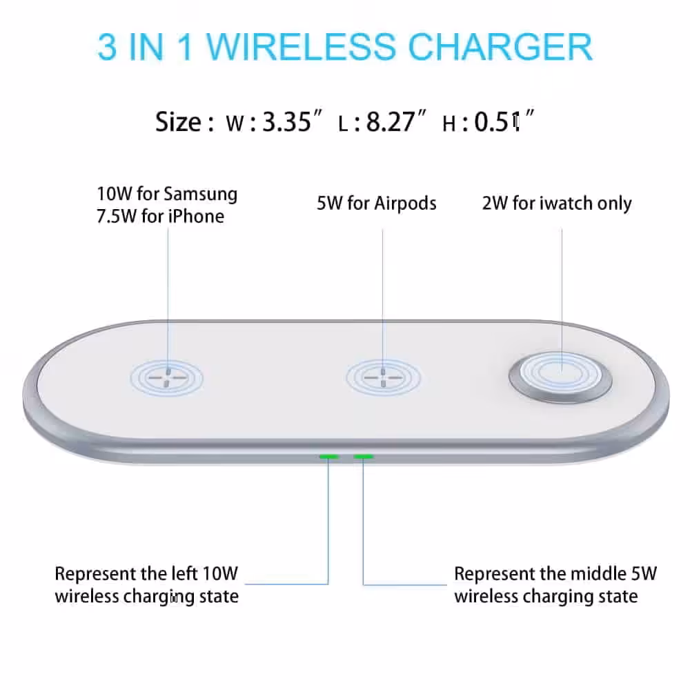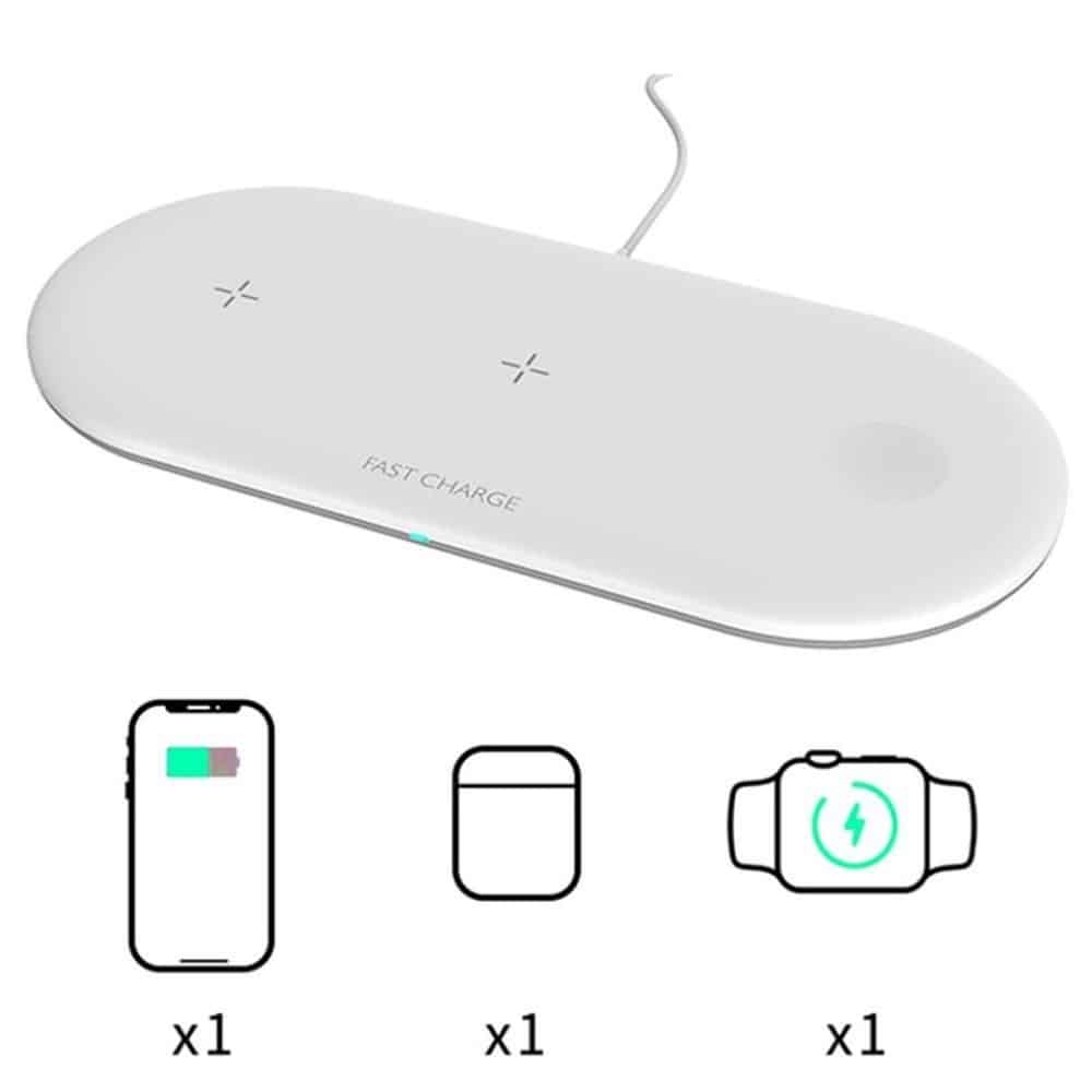 Q18 3 i 1 Trådløs oplader Hvid har en effekt på 15W og giver dig quick charge opladning til enhver lejlighed , uagtet det er til hjemmet, på arbejdet eller i skolen. Understøtter din mobil wireless charging , er dette et oplagt valg til dit skrivebordssetup. Tænk ikke på irriterende kabler, hvilket flyder og fylder med Q18 3 i 1 Trådløs oplader Hvid, som du får stor gavn af hver eneste dag. Trådløs opladning har aldrig været nemmere Det har aldrig været lettere at charge din telefon end med Q18 3 i 1 Trådløs oplader Hvid. Du kobler blot den trådløse oplader til strøm og placerer din smartphone på ladestationen og lader opladeren gøre, det den skal . Det smarte ved at være fri for ledninger , er at du bare kan bruge telefonen efter behov uden at skulle frakoble et ladekabel. Igennem hele dagen ved skrivebordet, kan du således have telefonen liggende på ladestationen og have din mobil fuldt opladet hvert øjeblik . Q18 3 i 1 Trådløs oplader Hvid er et produkt af høj kvalitet designet til optimal ydeevne. Dets unikke design og funktioner gør det til et must-have for enhver bruger. Med dets robusthed og holdbare materialer er det sikret mod dagligdagens slid og stød. Dets elegante udseende supplerer dets funktionalitet, hvilket gør det til et perfekt valg for alle brugere. Fordele ved Q18 3 i 1 Trådløs oplader Hvid: – Høj kvalitet og holdbarhed. – Optimal beskyttelse mod ridser og stød. – Elegante design, der komplementerer din enhed. Ofte stillede spørgsmål om Q18 3 i 1 Trådløs oplader Hvid: 1. Er Q18 3 i 1 Trådløs oplader Hvid modstandsdygtig over for ridser? Ja, dets højkvalitetsmaterialer beskytter mod ridser og skader. 2. Kan jeg nemt tilgå alle knapper og porte med dette cover på? Ja, designet sikrer let adgang til alle funktioner. 3. Er det svært at påføre og fjerne coveret? Nej, det er designet til nem påføring og fjernelse uden at beskadige enheden.