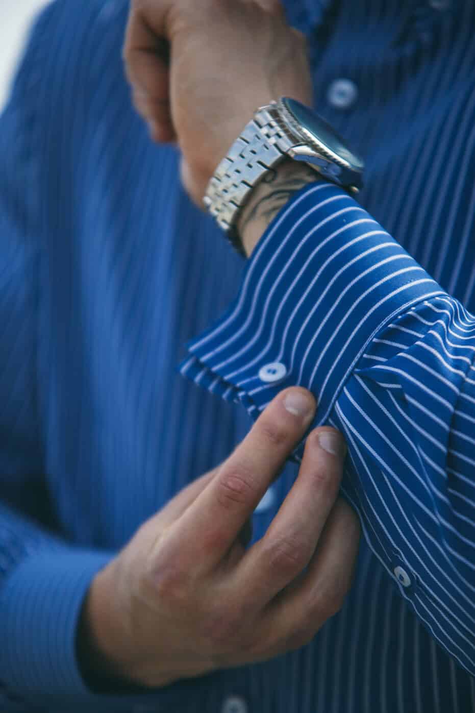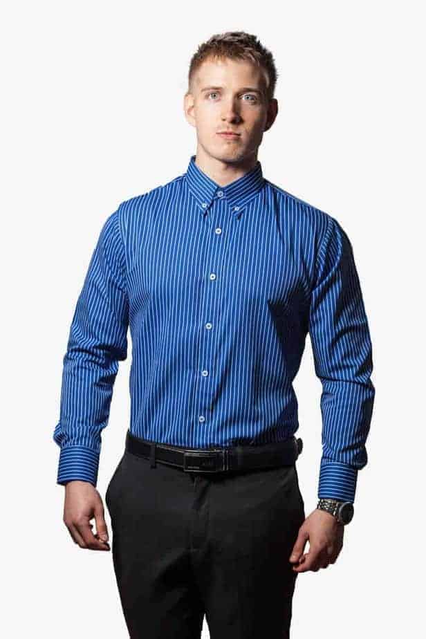 Stilfuld og Allsidig: Den blå/hvide stribede skjorte er et alsidigt stykke tøj, der kan styles på mange forskellige måder. Den passer perfekt til et par habitbukser eller til et komplet jakkesæt og kan nemt suppleres med et sort slips for at skabe det perfekte kontor- eller forretningsmøde look. Med sit moderne nordiske design kan denne skjorte være med til at udtrykke din personlige stil og sikre, at du altid ser skarp ud.