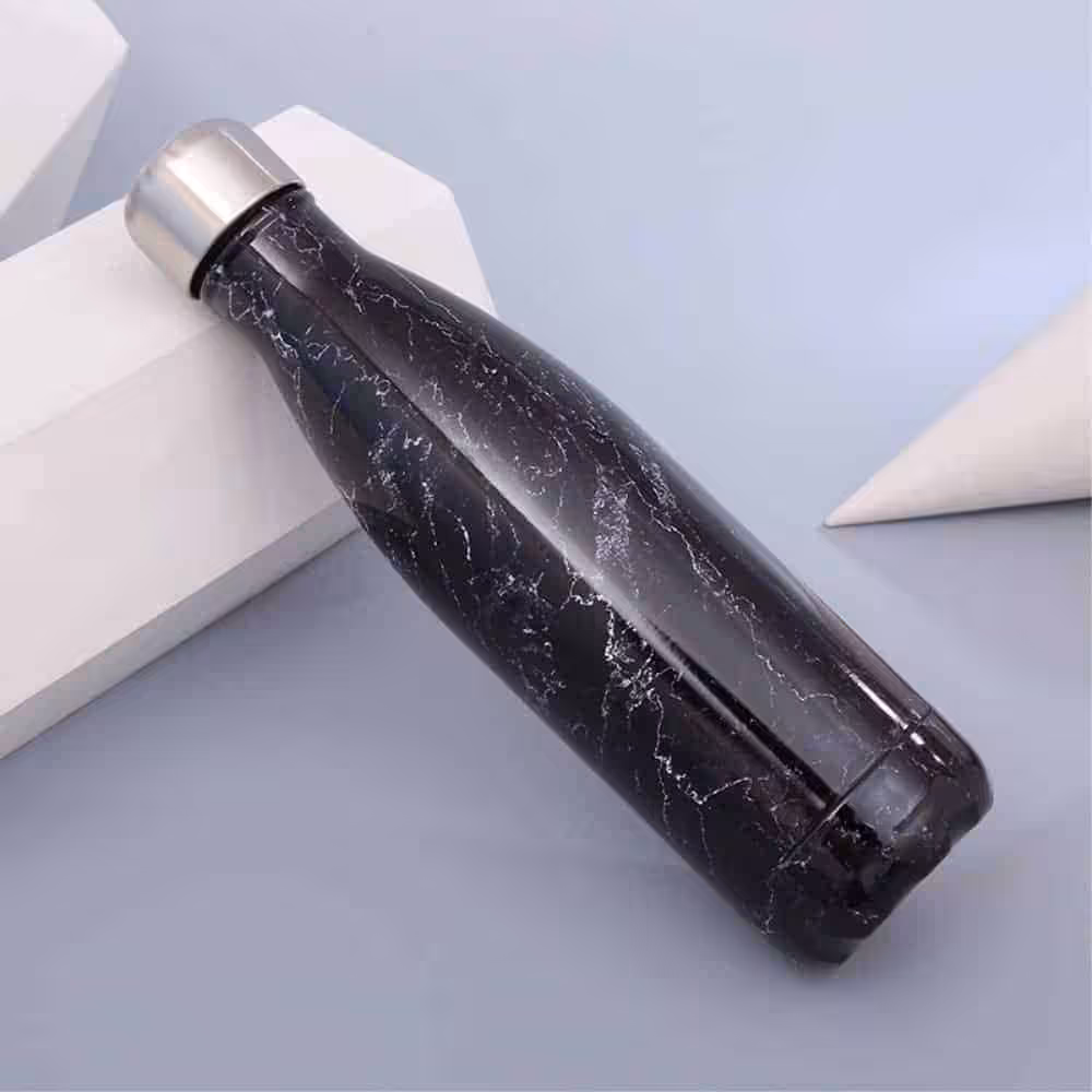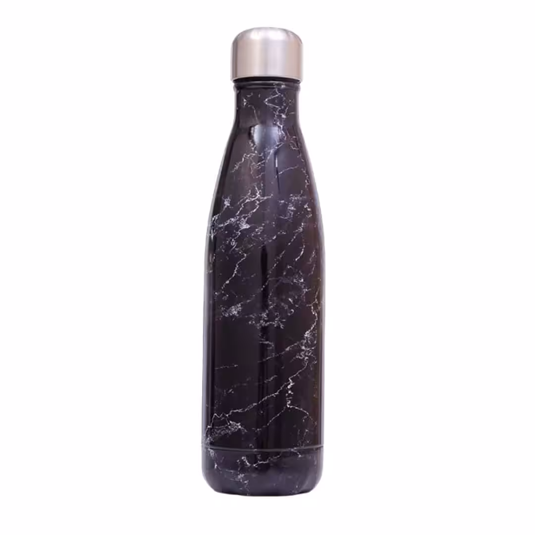 Det kan være smart at vælge termoflasker i farver der passer til om du foretrækker kolde eller varme drikke. Termoflaske Marmor Look Sort kan holde varmen eller kulden på din væske i op til 24 timer, men hvis den efterlades i solen kan denne tid dog forkortes, derfor kan denne termoflaske være ideel for dig der ønsker at nyde varme drikke over en lang periode om det er the, kaffe eller kakao du elsker at drikke varmt. Termoflasken er med skruelåg og med en kapacitet på 500 ml..