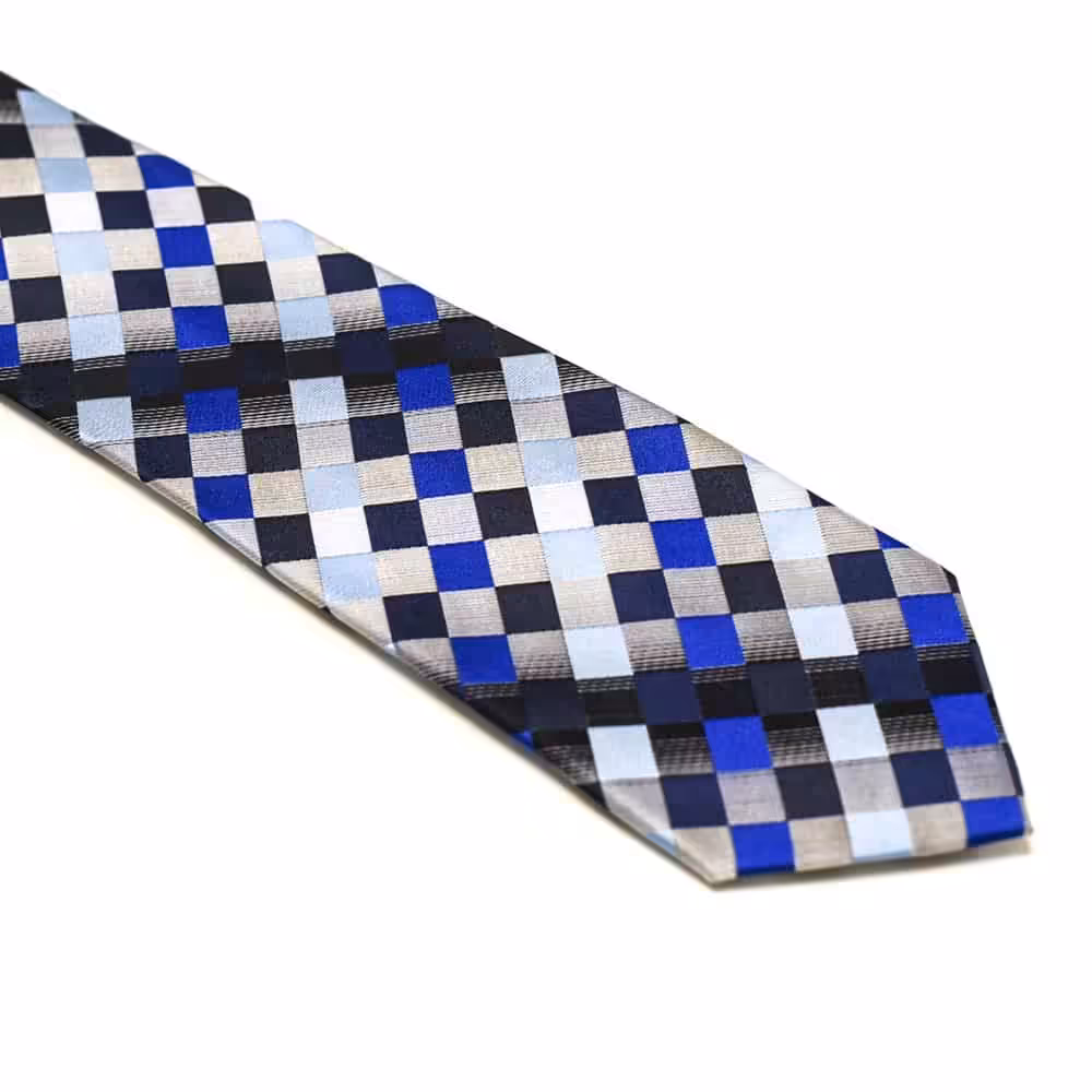 Kombiner eventuelt dette Ternet slips blå og sølv med en af vores Skjorter