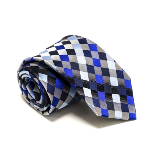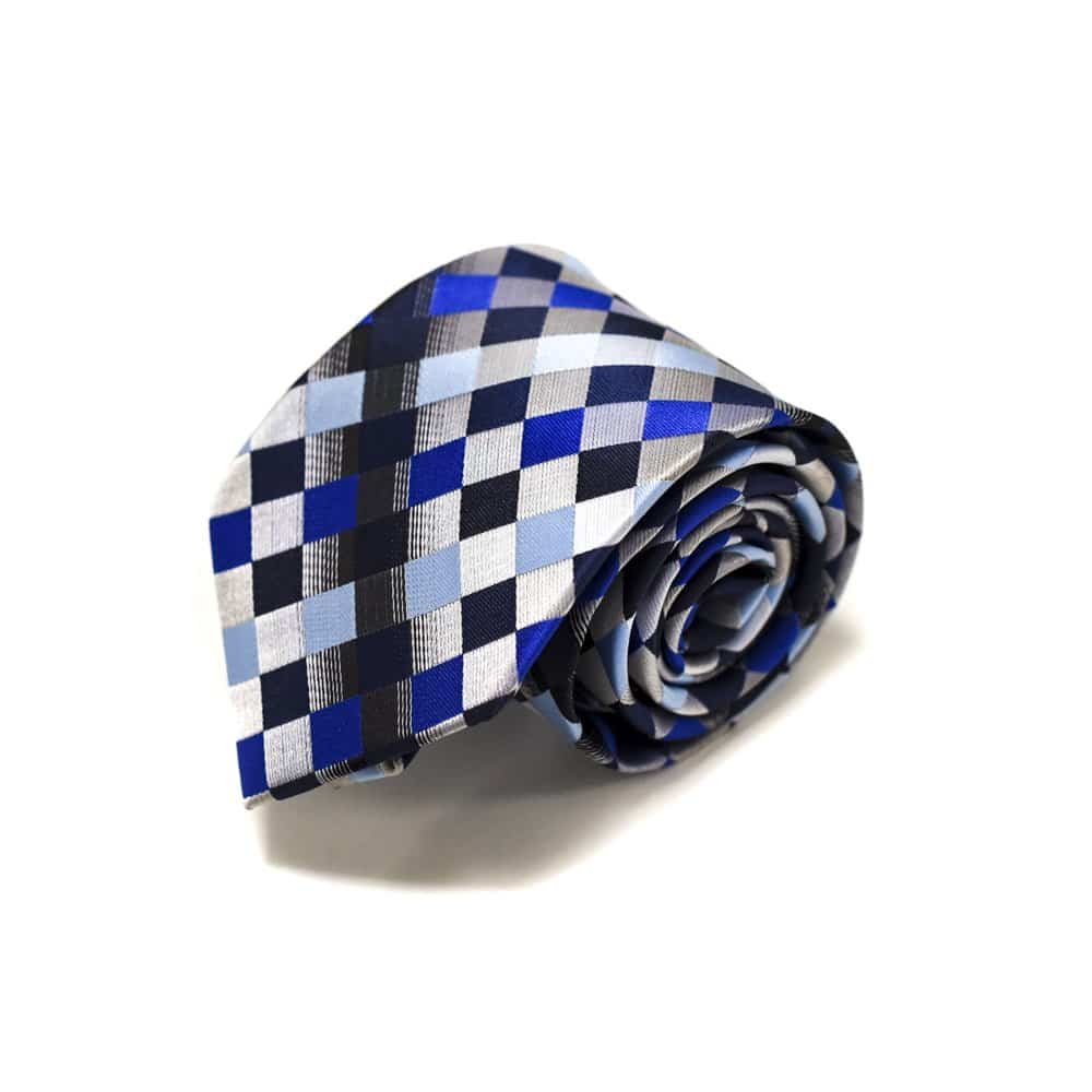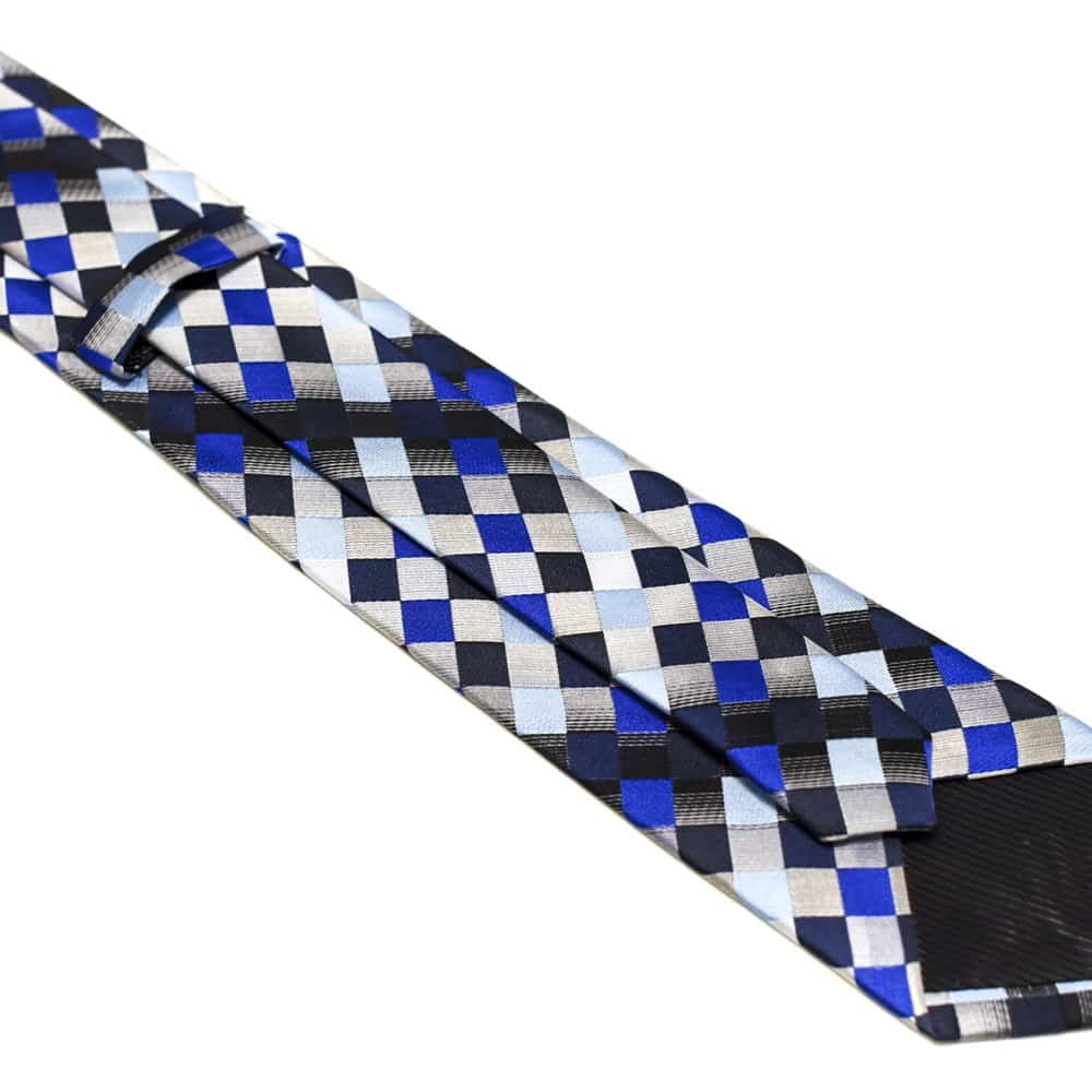 Ternet slips blå og sølv – Hvis du er til et mere koldt og råt udtryk, så vil dette slips helt sikkert være noget for dig! De forskellige blå og turkise farver i slipset, giver et maskulint look, samtidig med at de kølige grå nuancer gør det minimalistisk og rent. Dette turkis slips er til manden, der er vild med de blå farver, og som gerne vil sætte et fint præg på sit outfit, uden at det bliver for meget.