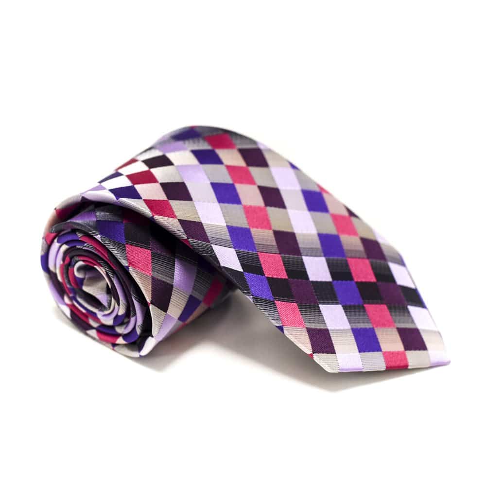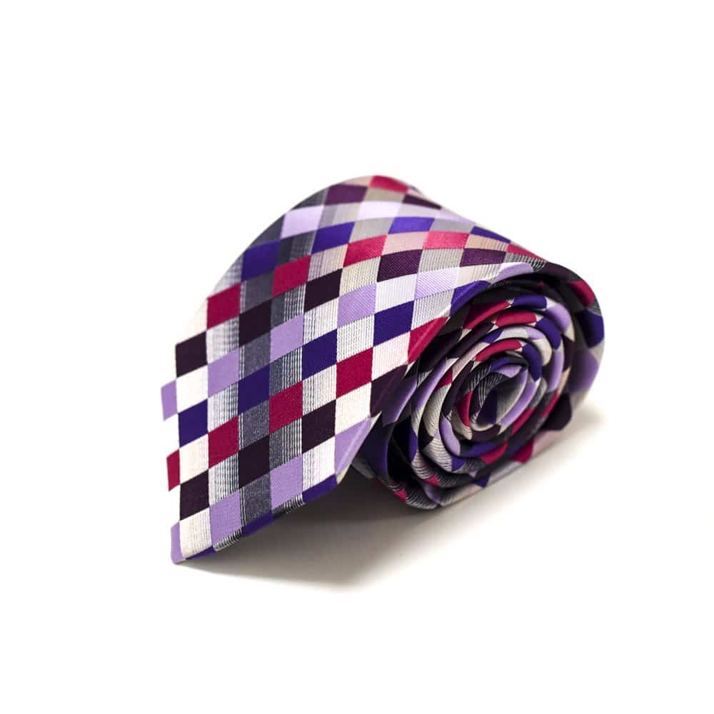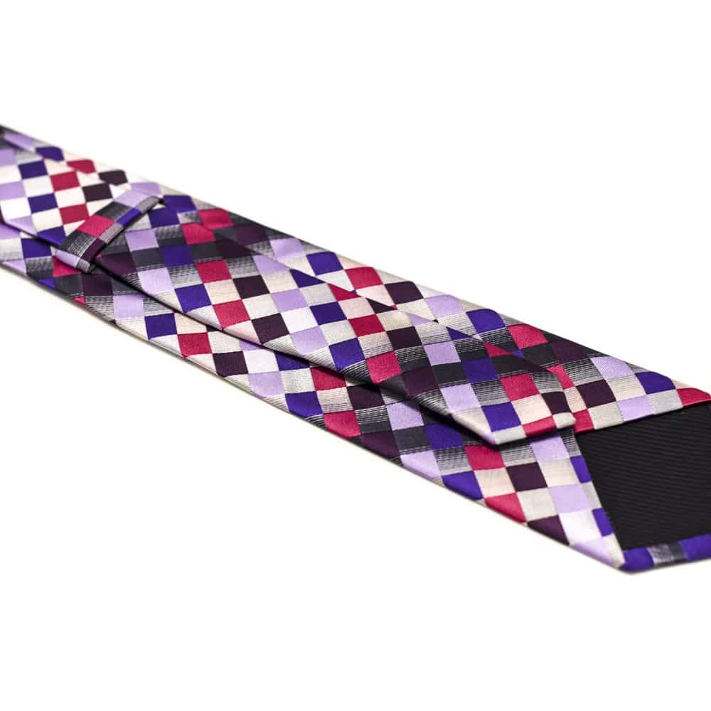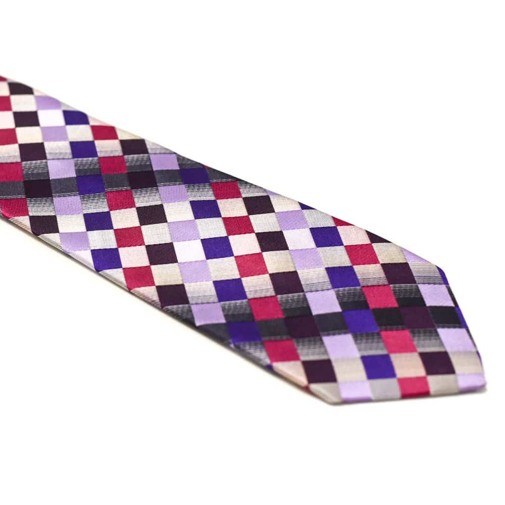 Ternet slips lilla og pink – Dette lækre slips tilfører lidt ekstra til dit look med det spraglede mønster. Så hvis du godt kan lide at skille dig ud, og hvis du er træt af altid at have slips på i de samme farver, så anbefaler vi vores ternede slips med de lilla og pink farver. Farverne komplementerer hinanden flot, og hvis du vil gå hele vejen, anbefaler vi at du sammensætter slipset med den fine tilhørende lommeklud. For et mere klassisk udtryk anbefaler vi, at du vælger tilbehør i mere nedtonede farver, dette kunne fx være en flot sølv slipsenål, der ikke fjerner fokus fra slipset.