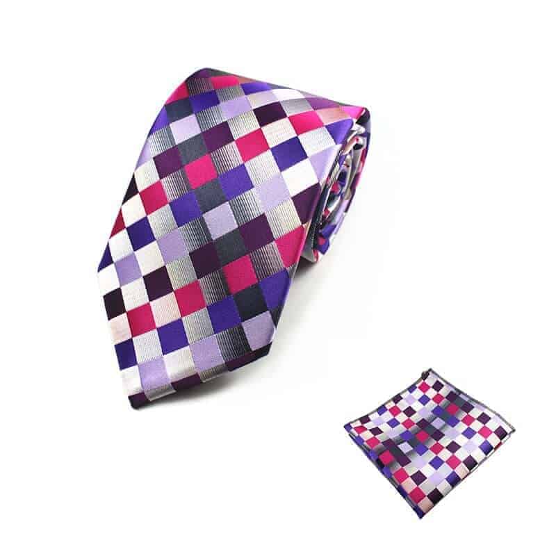 Ternet slips lilla og pink – Dette lækre slips tilfører lidt ekstra til dit look med det spraglede mønster. Så hvis du godt kan lide at skille dig ud, og hvis du er træt af altid at have slips på i de samme farver, så anbefaler vi vores ternede slips med de lilla og pink farver. Farverne komplementerer hinanden flot, og hvis du vil gå hele vejen, anbefaler vi at du sammensætter slipset med den fine tilhørende lommeklud. For et mere klassisk udtryk anbefaler vi, at du vælger tilbehør i mere nedtonede farver, dette kunne fx være en flot sølv slipsenål, der ikke fjerner fokus fra slipset.