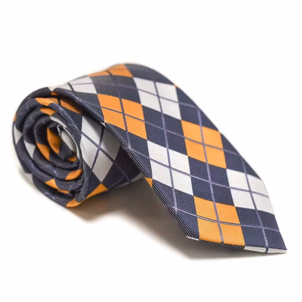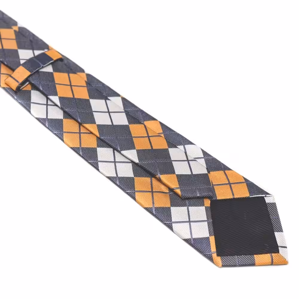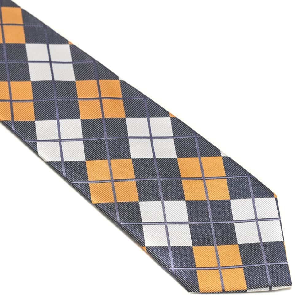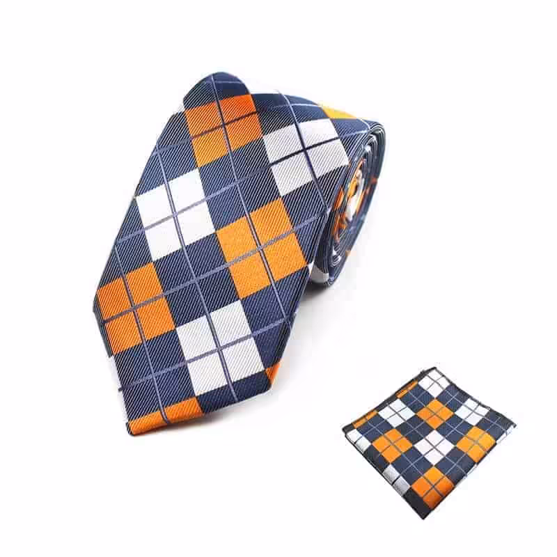 Ternet slips m klud – Dette slips er til manden, der godt kan lide et lidt mere retro udtryk. Med de fine tern og de krydsende ligner har slipset det helt rigtige look til en mand, der har styr på den old school stil! For et simpelt og sikkert look anbefaler vi, at dette slips bæres med en hvid skjorte På denne måde, sættes der mere fokus på de lækre farver. Vores orange retro slips og lommeklud er lavet i en blanding af 50% silke og 50% polyester. Dette signalerer højt kvalitet og klasse. Med det danske design får du et kreativt og nytænkende udtryk, som klart kan ses i mønstreret og sammensætningen af de forskellige farver. Symmetrien i dette slips gør, at det bliver skarpt og lækkert at se på. Samtidig komplimenterer de flotte farver hinanden på bedste vis. Den blå farve skaber et gennemgående udtryk og sikrer, at farverne på dette slips bliver kædet fint sammen. Mønstreret i slipset bliver fint fremhævet i lyset, hvor man virkelig kan se detaljerne i stoffet.