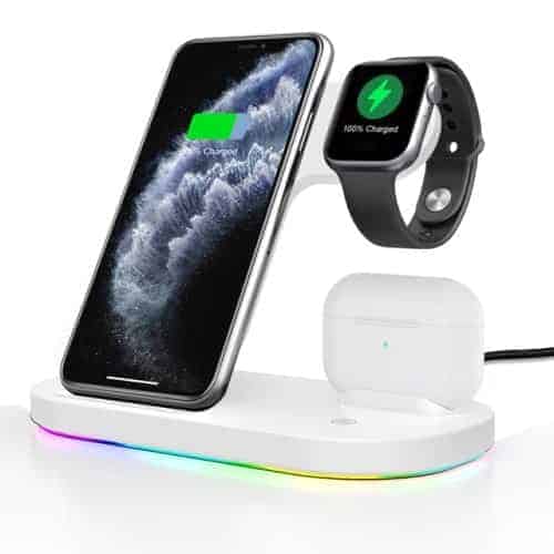 Trådløs oplader Hvid til SmartPhones og Apple Watch Airpods.