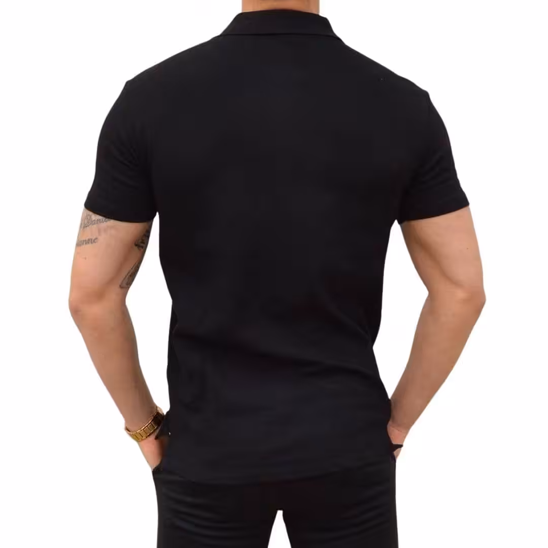 Designet til Varighed: Med sin dybe sorte farve og sofistikerede snit er vores poloshirt et testamente til klassisk mode. Farvens alsidighed og det elegante design sikrer, at denne poloshirt nemt bliver en favorit i din garderobe, klar til at blive båret igen og igen uden nogensinde at miste sin appel.
