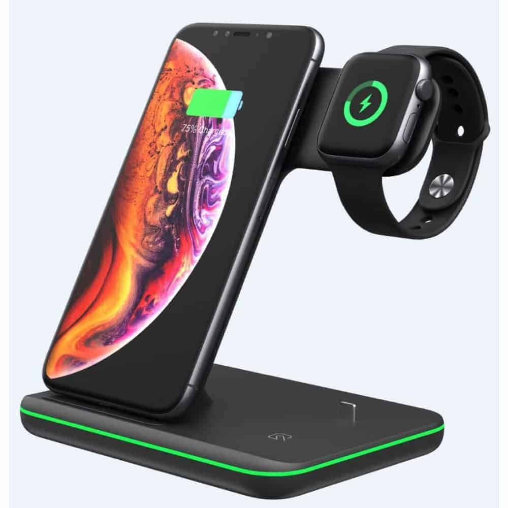 – Høj kvalitet Z7 3-IN-1 15W Qi Trådløs Dockingstation Sort.